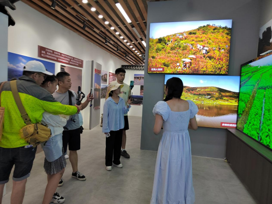 主播參觀(guān)十三都移民文化展示館 “新華村位于翠屏湖畔,是古田老庫(kù)區(qū)移民重點(diǎn)村,山清水秀、風(fēng)景如畫(huà),著名的‘玉田八景’中翠屏朝雨、仙嶺橋歌、文峰夕照等都出自這里。作為臨湖村莊,這里氣候清新、風(fēng)景宜人,資源優(yōu)越,食用菌(銀耳)、油奈、臍橙、李子等產(chǎn)業(yè)發(fā)達(dá),庫(kù)區(qū)移民文化資源豐富、有代表性?!秉S曉榕介紹道。