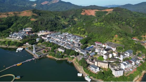 新華村風(fēng)光 東南網(wǎng)周瑞欽 攝 主播們跟隨泮洋鄉(xiāng)文旅干部黃曉榕,迎著清爽的湖風(fēng),沿著臨湖棧道向上走,觀(guān)賞村內(nèi)的自然景觀(guān),前往十三都移民文化展示館和古民居深入了解新華村的移民文化。