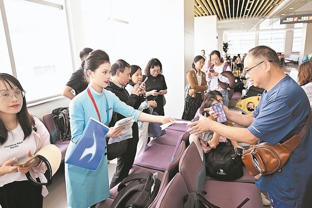 廈航地服工作人員為“廈門—馬累”航線旅客發(fā)放手機防水袋與鑰匙扣伴手禮。 東南網(wǎng)7月31日訊 (福建日報記者 鄧婕 田圓 通訊員 張煒康 文/圖) “馬爾代夫,我們來啦!”在登機口前,歡呼聲與笑聲此起彼伏,在熱烈的氛圍中,旅客朋友紛紛在“廈門—馬爾代夫正式啟航”的橫幅前打卡合影。 北京時間7月30日14:30,一架廈航波音787客機自廈門啟航,飛向馬爾代夫維拉娜國際機場,正式宣告廈航“廈門—馬累”定期航線的開啟,這是廈航的首條南亞航線,也是福建首條直飛馬爾代夫的定期航線。 “廈門—馬累”航線航班號為MF889/90,以兩周為周期,第一周為周二、六各一班;第二周為周四一班,去程航班為北京時間12:10—21:05,回程航班為22:05—07:00。此前,大多旅客前往馬爾代夫都選擇到上海乘機,隨著“廈門—馬累”直飛航班的開通,福建旅客將至少省去3小時的行程時間,還可節(jié)省20%~30%的出行費用。同時,從北京、昆明、成都,長沙、杭州等地的旅客通過廈航自廈門中轉(zhuǎn)到達(dá)馬爾代夫,可享受廈航在廈門機場的“通程中轉(zhuǎn)”服務(wù),收獲更加便捷高效的中轉(zhuǎn)體驗。 為保障該航線順利開通,高崎邊檢站提前部署優(yōu)化勤務(wù)方案,與機場、航空公司等口岸單位加強溝通,密切關(guān)注航班動態(tài),根據(jù)航班、旅客實時情況及時調(diào)整工作預(yù)案,科學(xué)配置執(zhí)勤警力,開足查驗通道,落實落細(xì)查驗措施,優(yōu)化工作流程,提高通關(guān)效率,為旅客營造舒適、快捷、高效的通關(guān)環(huán)境,全力保障出入境人員順暢通關(guān)。 |