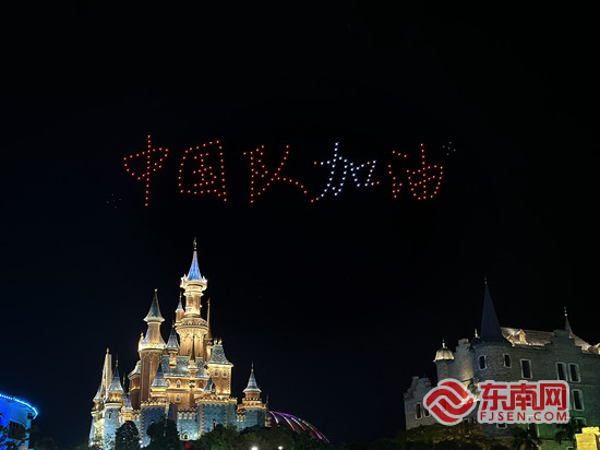 無人機(jī)表演編排出“中國隊(duì)加油”隊(duì)形。景區(qū)供圖