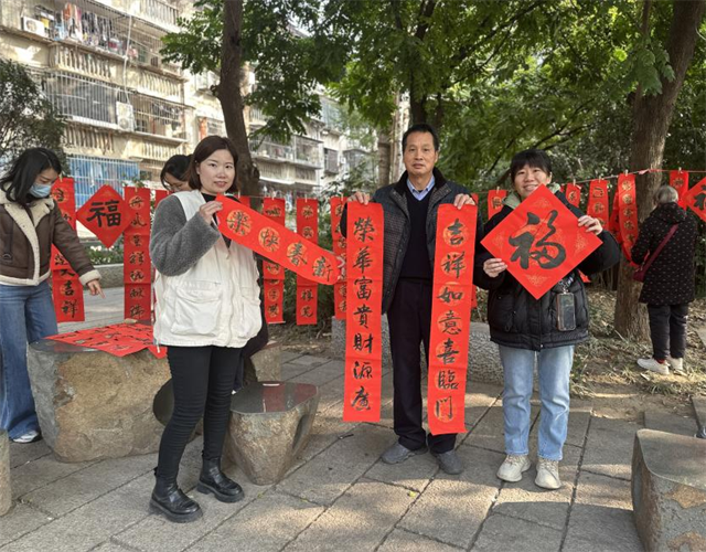 活動(dòng)現(xiàn)場(chǎng),紅紙翻飛,墨香四溢。省文旅廳退休老干部和社區(qū)人才代表揮毫潑墨,為群眾書寫著一副副寓意吉祥的春聯(lián),希望在新的一年為群眾帶來好運(yùn)和祝福。志愿者們還熱情地向群眾發(fā)放文明宣傳資料,引導(dǎo)群眾自覺接受護(hù)河愛水、移風(fēng)易俗等文明行為,共筑文明新風(fēng)尚。