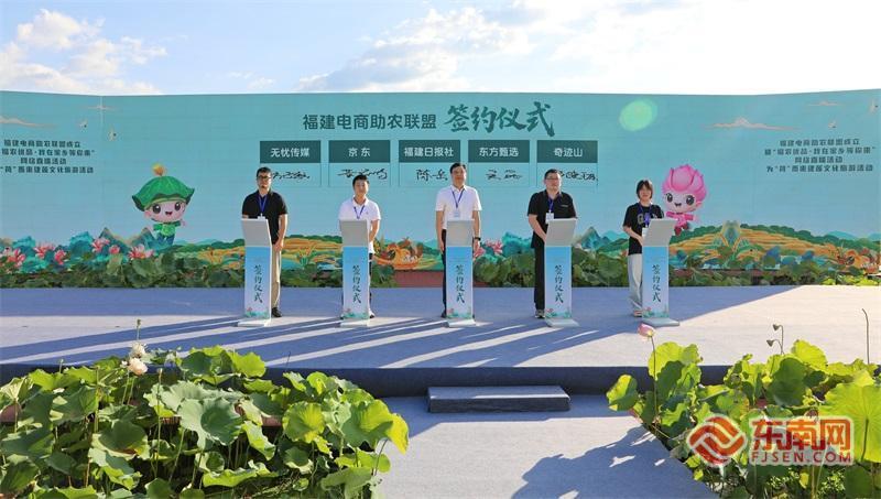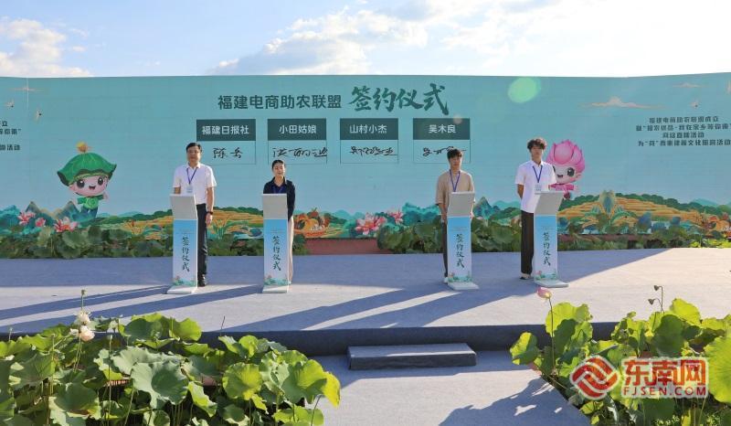福建電商助農(nóng)聯(lián)盟成立暨“福農(nóng)優(yōu)品?我在家鄉(xiāng)等你來”網(wǎng)絡(luò)直播活動(dòng)正式啟動(dòng)。 東南網(wǎng)8月13日訊(本網(wǎng)記者 盧金福 傅心婕 肖曉敏 文/圖)為深入貫徹落實(shí)習(xí)近平總書記關(guān)于“三農(nóng)”工作的重要論述和對(duì)網(wǎng)信工作的重要指示精神,大力實(shí)施《數(shù)字鄉(xiāng)村發(fā)展戰(zhàn)略綱要》,進(jìn)一步推動(dòng)農(nóng)村電商高質(zhì)量發(fā)展,8月13日,福建電商助農(nóng)聯(lián)盟成立暨“福農(nóng)優(yōu)品?我在家鄉(xiāng)等你來”網(wǎng)絡(luò)直播活動(dòng)、為“荷”而來建蓮文化旅游活動(dòng)在三明市建寧縣啟動(dòng)?;顒?dòng)將開展系列數(shù)字強(qiáng)農(nóng)惠農(nóng)富農(nóng)專項(xiàng)行動(dòng),以福建電商助農(nóng)聯(lián)盟成立為契機(jī),網(wǎng)聚各方力量,帶熱“福農(nóng)優(yōu)品”。 省委副書記、福州市委書記郭寧寧出席活動(dòng)并講話,省委宣傳部副部長(zhǎng)、省委網(wǎng)信辦主任、省互聯(lián)網(wǎng)信息辦公室主任申月,省委宣傳部副部長(zhǎng)、福建日?qǐng)?bào)社黨組書記、社長(zhǎng)陳輝宗,省農(nóng)業(yè)農(nóng)村廳黨組書記、廳長(zhǎng)陳明旺,以及省委辦公廳、省文旅廳、省人社廳、省商務(wù)廳、省婦聯(lián)、省廣播影視集團(tuán)、省農(nóng)村信用社聯(lián)合社、興業(yè)銀行、中國(guó)銀行福建省分行、中國(guó)建設(shè)銀行福建省分行、三明市、建寧縣相關(guān)負(fù)責(zé)同志出席活動(dòng)。 活動(dòng)現(xiàn)場(chǎng)亮點(diǎn)紛呈,舉辦了福建電商助農(nóng)聯(lián)盟成立儀式。該聯(lián)盟由省委網(wǎng)信辦牽頭,聯(lián)合省農(nóng)業(yè)農(nóng)村廳、省文旅廳、省婦聯(lián)共同指導(dǎo),福建日?qǐng)?bào)社(東南網(wǎng))、福建農(nóng)林大學(xué)、興業(yè)銀行等10家單位發(fā)起,匯聚MCN機(jī)構(gòu)、供應(yīng)鏈企業(yè)、金融機(jī)構(gòu)等多方力量,依托福建省特色農(nóng)產(chǎn)品和文旅資源優(yōu)勢(shì),構(gòu)建“政府引導(dǎo)+市場(chǎng)運(yùn)作+社會(huì)參與”的協(xié)同機(jī)制,借助數(shù)字技術(shù),形成數(shù)字鄉(xiāng)村強(qiáng)農(nóng)惠農(nóng)富農(nóng)、鄉(xiāng)村文旅深度融合、各類主體協(xié)同共建供應(yīng)鏈、文化產(chǎn)業(yè)賦能鄉(xiāng)村振興的立體化服務(wù)體系,推進(jìn)鄉(xiāng)村全面振興。