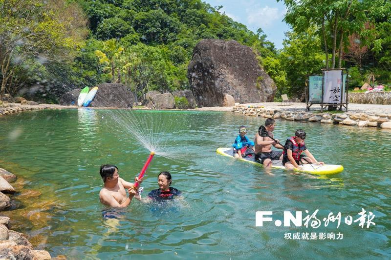 永泰千江月“小熊溪戲水區(qū)”,大人孩子們一起快樂玩水。 記者 包華 攝 “水上福道”覽城色 一城春色半城水,水,是福州生生不息的象征,星羅棋布的內(nèi)河展現(xiàn)著榕城的勃勃生機。自游船碼頭起航,乘一艘福船,在碧波中感受城市新色、山水之福,是不少游客來福州打卡的必選項。 “我從河北來的,早就聽說福州內(nèi)河是招牌景點,不容錯過!”上周日,在黎明湖公園碼頭,剛體驗完西湖—白馬河精品航線的趙先生一家意猶未盡。從西湖游船碼頭出發(fā),一路上,一家人賞西湖美景,過“水上電梯”——全市首個內(nèi)河船閘,聽白馬三郎和“缺哥望小姐”的傳說,收獲滿滿?!拔业泌s緊發(fā)個朋友圈!”看著手機里拍攝的視頻和照片,趙先生的母親意猶未盡。 從白天到夜晚,一艘艘微動力游船載著市民游客,在水波光影中觸摸到福州生生不息的脈動?!皾M眼綠意,古榕枝繁葉茂,還有鳥鳴魚躍,真的處處都是美好!”暑假來福州旅游的大學生小林在拍照的同時,還買了不少精美的文創(chuàng)產(chǎn)品。 與優(yōu)美狹長的西湖—白馬河航線不同,晉安河—光明港游線途經(jīng)城區(qū)內(nèi)河河網(wǎng)中最長的濱水景觀帶,許多老福州選擇這里,來開啟夏日水上之旅。每天傍晚,市民吳女士都會在晉安河沿線的步道上遛娃,提及家門口的親水體驗,她說:“水上乘船、水畔漫步,我們福州真是寶藏福地!” 139條內(nèi)河,總長295公里,內(nèi)河水域面積10.08平方公里……這幅城中山水畫卷里,“把內(nèi)河建成文明河、經(jīng)濟河、旅游河”的初心始終不變。目前,全市有10條航線投入常態(tài)化運營,通航里程達75公里以上。 福州水務集團所屬市水務文旅公司相關(guān)負責人介紹,圍繞“福舟悠游”核心品牌,以“四河三園一賽”為中心,主客共享、水岸兼營的內(nèi)河旅游系列產(chǎn)品也收獲了頗高人氣。 在“水上福道”特色盡展的同時,水上消費業(yè)態(tài)、水岸配套設(shè)施的加法也不斷添彩。為傳承和弘揚福州傳統(tǒng)龍舟文化,福州已連續(xù)3年在多條內(nèi)河水域共舉辦15場“水上嘉年華”龍舟巡回賽活動,實現(xiàn)內(nèi)河龍舟賽事多項“零的突破”。同時,挖掘“福”文化特色,開發(fā)20余款內(nèi)河文創(chuàng)產(chǎn)品,為市民游客打造共建共享的城市美學盛宴。