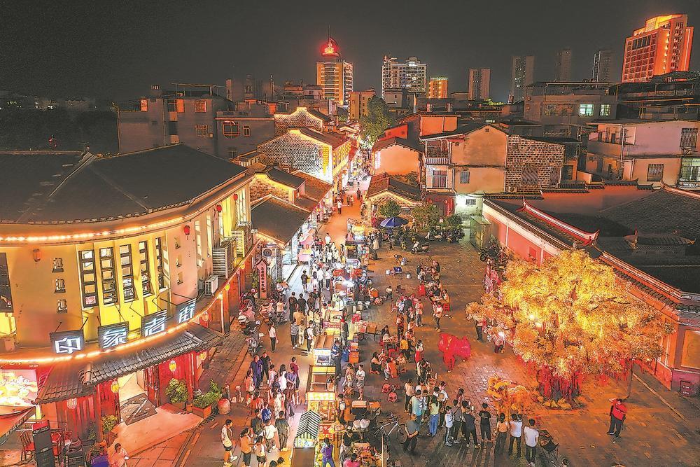 瓦子街夜色(上杭縣融媒體中心供圖) 東南網(wǎng)8月21日報道(福建日報記者 羅小春 徐士媛 通訊員 陳發(fā)玉 林斯乾) 伴著夏夜微風(fēng),每晚6時許,位于汀江之畔的上杭瓦子街便逐漸熱鬧起來。 在瓦子街南廣場,只見一座4米多高的圓環(huán)形金榜題名燈籠架在夜色中格外亮眼,紅綢燈面在燈帶的映照下泛著暖光,吸引眾多市民駐足觀看、合影留念;瓦子街南廣場邊上,古色古香的上杭文廟正舉辦“‘共書兩岸情 濡墨一家親’杭臺客家家訓(xùn)文化書畫展”活動,參加活動的游客絡(luò)繹不絕…… “一條瓦子街,半部上杭史?!蔽挥谕〗卑兜耐咦咏挚傞L1135米,是省級歷史文化街區(qū),這里不僅有流芳牌坊、太忠廟、文廟、丘氏總祠、丁狀元舊居等古跡,還引進(jìn)了茶館、地方美食、休閑餐飲、糕點(diǎn)烘焙、陶藝研學(xué)、文化創(chuàng)意等業(yè)態(tài),逐步形成集“游、娛、吃、購、商、服、學(xué)”于一體的夜經(jīng)濟(jì)商圈。 “這是由古田福果、肉甲子、肉圓、艾葉粄、野菜煎餅等上杭風(fēng)味小吃組成的‘萬福攸同’小吃拼盤?!痹谝患颐麨椤皟?yōu)食祿”的餐飲店里,店主陳文正忙著為客人介紹招牌菜。這家餐館主打當(dāng)?shù)乜图姨厣朗常H受游客青睞?!斑@兩年,瓦子街變得越來越熱鬧了,這為我們帶來了不少客流。”陳文說。 離“優(yōu)食祿”不遠(yuǎn),便是上杭首個老字號傳統(tǒng)技藝傳承館——“吳贊玉·上杭蘿卜干”傳統(tǒng)技藝傳承館的所在地。店內(nèi),“吳贊玉”上杭蘿卜干第三代傳承人吳旭正在給客人介紹剛開壇的蘿卜干制品?!拔覀儼褌鞒叙^開在瓦子街,就是為了讓更多人了解老字號、愛上老品牌?!?/p> 隨著上杭夜經(jīng)濟(jì)的活躍,不僅傳統(tǒng)的土特產(chǎn)店、老字號店“復(fù)活”了,越來越“潮”的新店也悄然出現(xiàn),為老街帶來了新時尚。 記者走進(jìn)一家名叫“禮遇杭川”的國營文創(chuàng)店,店員王女士熱情地介紹起店內(nèi)情況:“店鋪于今年5月1日開業(yè),是福建省博物館文創(chuàng)聯(lián)盟的首家分店,希望能給上杭市民和來此休閑的游客提供構(gòu)思精巧、制作精美的各種文創(chuàng)產(chǎn)品?!?/p> “我很喜歡上杭,特別是瓦子街,既有復(fù)古特色,又有現(xiàn)代氣息?!迸阃瑑鹤忧皝韰⒓?025年全國青少年體育聯(lián)合會青少兒羽毛球巡回賽(福建上杭站)的泉州游客邱先生說。 據(jù)統(tǒng)計,在新活動與新業(yè)態(tài)的雙重賦能下,上杭的文旅經(jīng)濟(jì)展現(xiàn)出強(qiáng)勁的發(fā)展勢頭。今年7月1日至8月15日,僅瓦子街便接待游客23萬人次,實(shí)現(xiàn)旅游收入約1.3億元;今年上半年,上杭縣接待游客650萬人次,同比增長12.1%,旅游總收入約58億元,同比增長11.9%。 “下一步,我們將依托本地歷史與文化資源,通過‘體育+文旅’的形式,串聯(lián)瓦子街、江濱路、臨江樓片區(qū)、解放路等商業(yè)區(qū),打造集文化、旅游、休閑、美食等于一體的開放性歷史文化街區(qū)和夜經(jīng)濟(jì)主題商圈?!鄙虾伎h文化體育和旅游局局長溫文達(dá)表示。 |