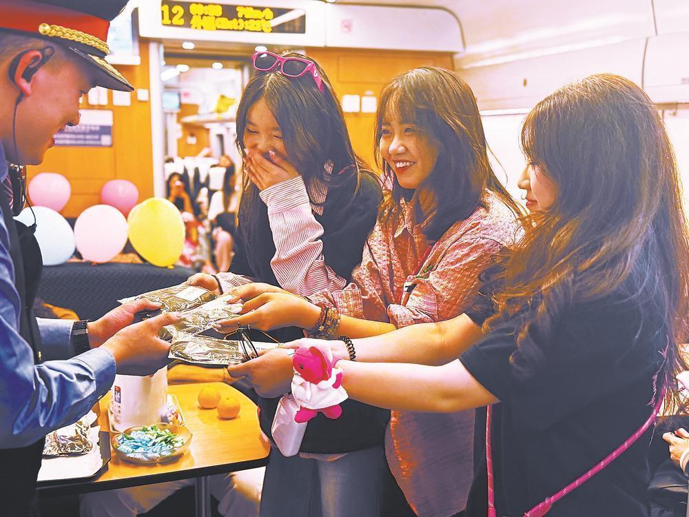 “歌迷專列”上,列車工作人員為歌迷提供一次性眼罩?!堦?yáng)彬 攝 東南網(wǎng)11月18日?qǐng)?bào)道(福建日?qǐng)?bào)記者 張穎 張文奎 通訊員 付森 謝佳璐) 11月17日深夜0時(shí)40分,載著1300余名歌迷的D4957/6次列車從廈門站平穩(wěn)駛出,向廣州東站駛?cè)?;深?時(shí)42分,另一趟G9805次“歌迷專列”搭載500余名歌迷從福州南站啟程,前往廈門站。記者從中國(guó)鐵路南昌局集團(tuán)有限公司(以下簡(jiǎn)稱“南鐵”)獲悉,11月12日至18日,南鐵密集加開7趟不同方向、不同主題的“定制專列”,滿足各類群體旅客的出行需求。 “上周末,福州、廈門有大型演唱會(huì),為滿足觀演群體的集中出行需求,我們開行了兩趟‘歌迷專列’,不僅優(yōu)化旅客乘車體驗(yàn),還讓交通服務(wù)與文化需求精準(zhǔn)契合?!蹦翔F客運(yùn)部客運(yùn)技術(shù)科科長(zhǎng)葉榮根介紹。 破解觀演夜間返程難題 17日深夜,來(lái)自廈門的歌迷陳希娜在福州看完演唱會(huì)后,乘坐“歌迷專列”返回廈門?!爸芤灰话愣加惺?,在福州過(guò)夜,回去就來(lái)不及,看到有‘歌迷專列’就放心過(guò)來(lái)看演唱會(huì)了,娛樂工作兩不誤。”陳希娜說(shuō)。 “歌迷專列”不僅在開行時(shí)間上精準(zhǔn)匹配需求,更在服務(wù)細(xì)節(jié)上體現(xiàn)用心。福州火車站在了解到歌迷群體的出行意愿與服務(wù)需求后,通過(guò)車站微信公眾號(hào)、微博等平臺(tái)及時(shí)發(fā)布歌迷出行需求問(wèn)卷調(diào)查,共收集有效問(wèn)卷1059份,通過(guò)問(wèn)卷了解到更多的服務(wù)需求。 列車車廂內(nèi)部以音樂主題進(jìn)行裝飾,懸掛應(yīng)援旗幟、張貼歌手海報(bào)、擺放明信片等,打造出“抬頭可見、觸手可及”的音樂空間,使旅途成為觀演體驗(yàn)的延續(xù)。列車乘務(wù)組提供“靜音服務(wù)”與“點(diǎn)對(duì)點(diǎn)”到站提醒,乘務(wù)員把廣播切換為“低音量模式”,每節(jié)車廂都設(shè)置應(yīng)援物資暫存區(qū),乘務(wù)員主動(dòng)協(xié)助整理收納,并溫馨配備內(nèi)含常用藥品、消毒濕巾等的暖心服務(wù)包,更為有需要的旅客提供毛毯與遮光眼罩,全方位提升了歌迷的出行體驗(yàn),也破解夜間返程難題。 精準(zhǔn)對(duì)接各種出行需求 鐵路部門堅(jiān)持以市場(chǎng)為導(dǎo)向,精準(zhǔn)對(duì)接旅客出行需求,持續(xù)推出“旅游專列”“球迷專列”“歌迷專列”“研學(xué)專列”以及文化、團(tuán)建等多種“定制專列”。 11月12日以來(lái),南鐵及時(shí)了解出行需要,個(gè)性化開行了上海南站到南昌東站間的“企業(yè)團(tuán)建專列”;龍巖站至南昌站、贛州西站至深圳北站間的“研學(xué)專列”;廬山站至張家界西站間的“跨省球迷旅游專列”;廈門站至廣州東站、福州南站至廈門站的“歌迷專列”。11月18日,南鐵將繼續(xù)開行贛州西至深圳北的“研學(xué)專列”。 “7天內(nèi),開行7趟不同方向的‘定制專列’,需要在繁忙的運(yùn)行圖中精準(zhǔn)見縫插針,協(xié)調(diào)車輛調(diào)度、人員配置、站點(diǎn)銜接等多個(gè)環(huán)節(jié)?!比~榮根表示,為確保每趟“定制專列”能安全、準(zhǔn)點(diǎn)開出,南鐵優(yōu)化運(yùn)行方案,統(tǒng)籌考慮運(yùn)輸標(biāo)準(zhǔn)和旅客需求,不斷擴(kuò)大服務(wù)范圍?!拔覀?yōu)閷A新每烷_設(shè)綠色通道、專屬候車區(qū)域,同時(shí),提前通報(bào)專列到達(dá)時(shí)間,協(xié)調(diào)大巴、出租車、網(wǎng)約車等公共交通工具,服務(wù)好專列開行‘最后一公里’?!?/p> 多元服務(wù)優(yōu)化出行體驗(yàn) 為了持續(xù)優(yōu)化旅客出行體驗(yàn),南鐵將“一專列一方案”貫徹在運(yùn)行方案、停站設(shè)置、氛圍布置、餐食服務(wù)等方方面面。鐵路部門在福建地區(qū)車站和部分列車上創(chuàng)新推出包含姜母鴨、沙茶肉片等閩地風(fēng)味的“見福鐵餐”;在江西地區(qū)車站和部分列車上供應(yīng)瓦罐湯、江西小炒等江西風(fēng)味飲食;為學(xué)生群體準(zhǔn)備了營(yíng)養(yǎng)均衡的煲仔飯和小碗菜,為歌迷、球迷群體準(zhǔn)備了足球套餐、減脂餐等豐富多樣的餐食選擇。 據(jù)了解,“團(tuán)體專列”申請(qǐng)需滿足三項(xiàng)基本要求:乘車人數(shù)達(dá)到團(tuán)體出行基本規(guī)模,乘車時(shí)間盡量避開運(yùn)力飽和時(shí)段,乘車區(qū)間符合鐵路調(diào)度要求。滿足條件的團(tuán)體可直接聯(lián)系屬地車站提交申請(qǐng),鐵路部門將結(jié)合線路運(yùn)力給出專屬方案。 對(duì)于規(guī)模稍小的團(tuán)體,12306客服中心也開通了團(tuán)體票電話受理服務(wù):開車前3天及以上,20人及以上同一日期、車次出行的團(tuán)體,可在每日8時(shí)至18時(shí)撥打服務(wù)電話咨詢辦理。“從‘包高鐵’到訂團(tuán)體票,我們希望通過(guò)多元化服務(wù),讓每一趟出行都更舒適、更有溫度?!比~榮根表示,未來(lái)將持續(xù)對(duì)接各類出行需求,讓“定制專列”成為連接民生需求與文體旅游的重要橋梁。 記者手記 讓每一次奔赴都更舒心 福建日?qǐng)?bào)記者 張文奎 出一趟門,“怎么去”和“怎么回”常是大家的焦慮點(diǎn),看演唱會(huì)更是如此。年輕人一般僅周末有時(shí)間,異地住下來(lái)趕不上第二天的課程或工作,請(qǐng)假又覺得沒有“性價(ji