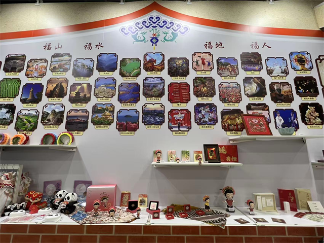 本次旅展整體設(shè)計(jì)以閩南古厝的紅磚、山花、燕尾脊為主元素,配以時尚的小小蟳埔女打卡區(qū)、漢服簪花體驗(yàn)區(qū),還特別設(shè)置漳州木版年畫拓印“?!弊?、福建茉莉花茶和武夷巖茶品茗以及“趣游福建轉(zhuǎn)轉(zhuǎn)樂”大抽獎等豐富多樣的互動體驗(yàn)項(xiàng)目,文創(chuàng)品陳列與圖片展區(qū)巧妙融合,設(shè)計(jì)風(fēng)格復(fù)古典雅、福建鄉(xiāng)情味十足。展區(qū)內(nèi)精選46幅圖片,展出鼓浪嶼、武夷山、福建土樓等福建5大世界遺產(chǎn)的特色風(fēng)貌,涵蓋福建的山水、人文、古厝、民俗、非遺和美食等,幀幀出彩的文旅圖片以及“周末戲相逢”和福建文旅脫口秀等品牌活動的圖文視頻展播呈現(xiàn)閩式生活的精彩與活力,吸引眾多臺灣觀眾游客駐足回味。
