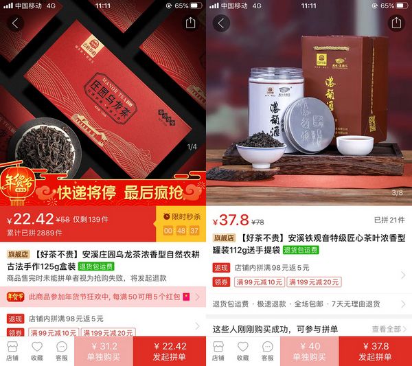 ▲云嶺茶葉帶來的莊園烏龍茶和大師鐵觀音,在拼多多年貨節(jié)期間,兩款產(chǎn)品還在原有價格基礎(chǔ)上推出了限時優(yōu)惠。 擁抱新消費,千年茶都再出發(fā) 福建安溪是我國茶葉之都,地方茶產(chǎn)業(yè)迄今已有一千多年歷史。北宋詞人黃裳在《演山集》中有云:“江淮、荊襄、嶺南、兩川、二浙,茶之所出,而出于閩中者尤天下之所嗜。”在經(jīng)年累月的制茶過程中,安溪茶農(nóng)發(fā)明創(chuàng)造了特殊的工藝,形成獨特的茶類——烏龍茶。 安溪鐵觀音是烏龍茶中的極品,其品質(zhì)特征是:茶條卷曲,肥壯圓結(jié),沉重勻整,色澤砂綠,形似蜻蜓頭,置于手心,沉重似鐵,如同觀音手掌,故名“鐵觀音”,素有“青蒂綠腹蜻蜓頭”,“美如觀音重如鐵”的美譽。國家茶葉產(chǎn)業(yè)體系經(jīng)濟研究室的報告顯示,在全國各大茶類中,安溪鐵觀音以近20%的市場占有率位列第一。