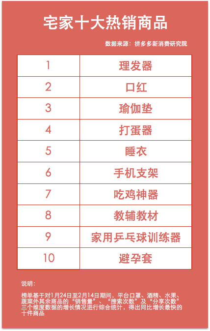 拼多多發(fā)布“宅家十大熱銷商品”:理發(fā)剪、打蛋器、避孕用具上榜
