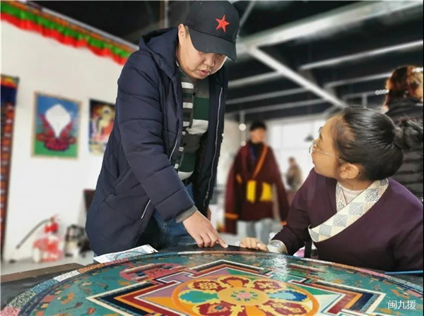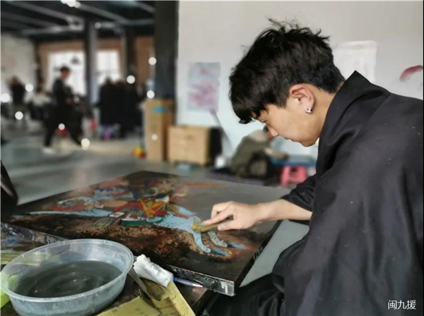本次直播活動由福建省文化和旅游廳指導(dǎo),福建省藝術(shù)館(福建省非物質(zhì)文化遺產(chǎn)保護(hù)中心)、昌都市文化局(市文物局)、福建省第九批援藏工作隊主辦,昌都市新區(qū)管委會協(xié)辦,海峽教育報承辦。 2019年,福建省第九批援藏工作隊會同福建省文旅廳、福建省藝術(shù)館和昌都市文化局聯(lián)合組建了“唐卡漆畫文化產(chǎn)業(yè)小組團(tuán)”,選取昌都市唐卡藝術(shù)傳承人和唐卡畫師為重點培訓(xùn)對象,教授運(yùn)用漆畫技藝制作唐卡作品。今年5月,昌都市首屆唐卡漆畫技藝培訓(xùn)班在西藏昌都開班,37名學(xué)員經(jīng)過40天培訓(xùn),將創(chuàng)作一批以昌都解放70周年為主題的唐卡漆畫作品,為昌都解放70周年獻(xiàn)禮。 培訓(xùn)班既是福建藝術(shù)扶貧工程打造的農(nóng)民漆畫創(chuàng)新實踐的升級版,也是福建省第九批援藏工作隊按照中組部精準(zhǔn)實施“小組團(tuán)”援藏工作的要求,采取“短小精?!钡慕M團(tuán)方式,找準(zhǔn)切入點,解決問題,填補(bǔ)行業(yè)空白創(chuàng)新的“福建經(jīng)驗”和“福建模式”