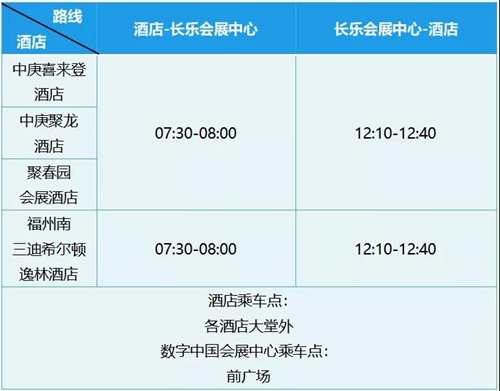 注:以上信息如有變動,將另行公告。 3. 住宿安排 峰會為參會嘉賓安排接駁巴士交通服務(wù),保障參會嘉賓的接送機(jī)、接送站、注冊中心往返酒店接駁、參會接駁等交通需求。 3.1 接機(jī)、站 在福州長樂國際機(jī)場、福州站、福州南站,將為參會嘉賓安排接機(jī)/站班車服務(wù)。屆時,工作人員將在抵達(dá)口與出站口手舉峰會主視覺的接機(jī)、站牌恭候,敬請留意。 接機(jī)、站交通安排: