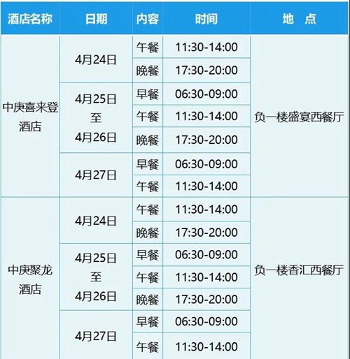 第四屆數(shù)字中國建設(shè)峰會 后勤服務(wù)保障指南 來了! 現(xiàn)場簽到地點 酒店住宿安排 接駁車發(fā)車時間 …… 你想知道的都在這里! 第四屆數(shù)字中國建設(shè)峰會 后勤服務(wù)保障指南 目錄 1. 簽到及證件 1.1 現(xiàn)場簽到 1.2 證件 1.3 大會物料包 2. 住宿安排 2.1 大會酒店 2.2 酒店咨詢臺 2.3 用餐服務(wù) 3. 交通服務(wù) 3.1 接機(jī)/站 3.2 注冊中心接駁 3.3 會間接駁 3.4 送機(jī)/站 4. 醫(yī)療服務(wù) 1. 簽到及證件 1.1 現(xiàn)場簽到 注冊中心設(shè)置在海峽國際會展中心南廣場西側(cè)大棚。注冊中心將為參會嘉賓提供簽到、證件及物料領(lǐng)取、酒店入住憑條領(lǐng)取、信息咨詢等服務(wù)。請攜帶您在線注冊時所使用的身份證件原件前往注冊中心辦理現(xiàn)場簽到。建議您提前下載閩政通APP并申領(lǐng)“八閩健康碼”,在簽到前配合工作人員完成健康狀態(tài)的核驗。 注冊中心地點: 海峽國際會展中心南廣場西側(cè)大棚 注冊中心開放時間: 4月24日 8:00-24:00 4月25日 8:00-當(dāng)日會議結(jié)束 4月26日 8:00-當(dāng)日會議結(jié)束 峰會將安排從機(jī)場/火車站至注冊中心接駁巴士及注冊中心往返參會嘉賓下榻酒店的接駁巴士。請留意峰會乘車處指示 1.2 證件 參會嘉賓將獲得印有個人照片、姓名的證件。嘉賓證是參會嘉賓進(jìn)入峰會現(xiàn)場的身份憑證,請在參會期間佩戴,不可轉(zhuǎn)借他人使用。若遇到證件遺失等情況,請移步注冊中心信息咨詢窗口辦理掛失手續(xù)。 1.3 大會物料包 內(nèi)含峰會手冊、會務(wù)套裝及紀(jì)念品等。 2. 交通服務(wù) 2.1 大會酒店 峰會期間,為參會嘉賓共安排四家指定酒店住宿,分別是中庚喜來登酒店、中庚聚龍酒店、聚春園會展酒店、福州南三迪希爾頓逸林酒店。具體下榻酒店將在您完成簽到后告知。與會嘉賓在酒店的其他個人消費(fèi),請嘉賓自理。 2.2 酒店咨詢臺 本次峰會住宿保障時間為4月24日9:00至4月27日2:00。屆時,四家指定酒店將設(shè)咨詢服務(wù)臺,提供相應(yīng)配套服務(wù),包括食宿保障、交通保障、醫(yī)療保障、會務(wù)咨詢等。 2.3 用餐服務(wù) 峰會將在各下榻酒店為參會嘉賓提供工作餐,形式為自助。請憑峰會證件/餐券入場就餐。具體信息詳見以下用餐安排表: