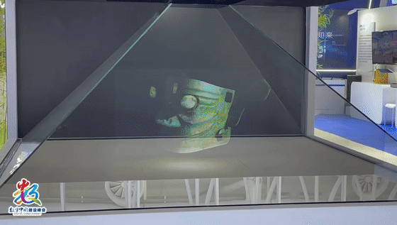 三星堆文物通過 3D全息投影技術(shù) 將文物影像懸浮在柜體實(shí)景中 實(shí)現(xiàn)具有360°絕對(duì)可視的特效 縱深感非常強(qiáng)