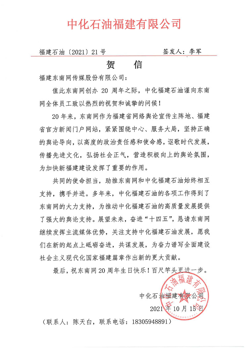 中化石油福建有限公司賀信