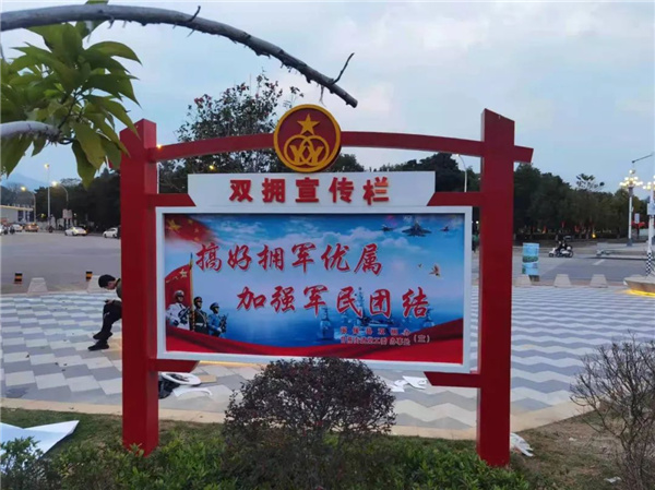 公園在原有主題植物品種、主入口廣場形象展示與多功能大草坪的基礎(chǔ)上,因地制宜融入雙擁主題文化元素,建設(shè)了“雙擁步道”“宣傳欄”等板塊,通過雙擁題材的雕塑小品、愛國擁軍宣傳牌等設(shè)施展現(xiàn)閩侯縣雙擁工作。