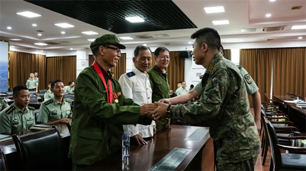 “我也有個問題想問三位英雄,在戰(zhàn)場上您感覺到最苦的時候是什么時候?是什么讓大家堅持下來的?”主持人彭鳳瑤提問。 9月16日,長泰區(qū)三名參戰(zhàn)老兵受邀參加駐泰部隊《不忘崢嶸歲月 我們砥礪前行》“丫丫有約”訪談節(jié)目,以此向第九批回家的在韓中國人民志愿軍烈士致敬! 訪談開始前,全體人員一起觀看了抗美援越、西沙群島自衛(wèi)反擊戰(zhàn)、對越自衛(wèi)反擊戰(zhàn)三段紀錄片,共同見證那段烽火硝煙的歲月,感受那些在戰(zhàn)火中燃燒的激情。 訪談過程中,參戰(zhàn)老兵們?yōu)楣俦v述戰(zhàn)斗故事,以親身經(jīng)歷帶領(lǐng)大家重溫了那段難忘的歲月?!拔?965年入伍,入伍一年我就奔赴抗美援越戰(zhàn)爭前線,登上了開往前線的列車......”參戰(zhàn)老兵的講述將官兵的思緒帶回到那個戰(zhàn)火紛飛的年代。 “我在海軍服役16年的時間,跑遍祖國的萬里海疆,也參加了兩次戰(zhàn)斗,面對數(shù)倍于我們的敵人,靠的是堅守初心永遠跟黨走的信念!”身著海軍軍裝佩戴勛章的蔡朝生動情地說道。 “戰(zhàn)場山高林密,洞多地形極為復雜,氣候潮濕旱螞蝗多,面對敵人設(shè)置竹簽,陷阱,地雷。我和戰(zhàn)友們在后來的防御戰(zhàn)中,幾天幾夜斷糧斷水,嘴唇起泡,吃壓縮干糧都難以吞下,就在這樣艱苦的環(huán)境下,我就靠著絕不放棄的信念撐著”姚太元回憶起參加邊境戰(zhàn)爭的經(jīng)歷娓娓道來。