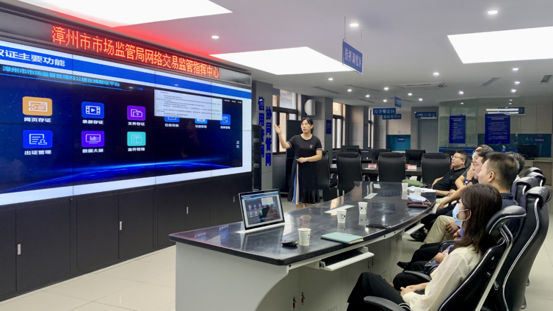 調(diào)研組首先參觀了漳州市局網(wǎng)絡(luò)交易監(jiān)管指揮中心。網(wǎng)監(jiān)分局同志匯報了市市場監(jiān)管局開展國家總局電子數(shù)據(jù)取證“雙試點”的工作成果,系統(tǒng)全面地展示了市局自主研發(fā)的公捷取證平臺、凌波聯(lián)盟鏈?,F(xiàn)場演示環(huán)節(jié),市局執(zhí)法人員熟練操作了電腦端網(wǎng)頁存證、錄屏存證、文件存證和移動端錄屏存證等電子取證流程,高效準(zhǔn)確地展示出電子取證結(jié)果。
