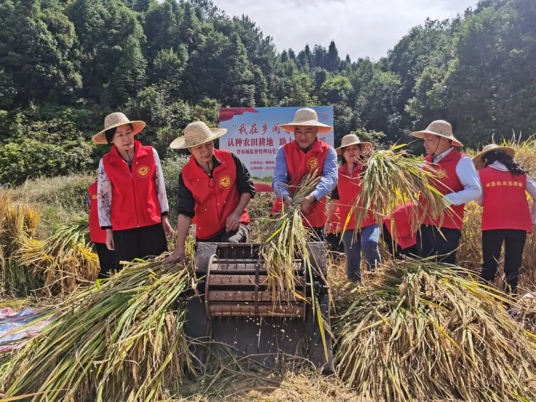 沃野生金,稻菽飄香 為積極響應(yīng)福建省委省直機(jī)關(guān)工委倡議,10月10日,福建省市場(chǎng)監(jiān)管局黨組書(shū)記、局長(zhǎng)黃培惠帶領(lǐng)30多名黨員干部前往古田縣吉巷鄉(xiāng)薛后村,開(kāi)展“我在鄉(xiāng)間有畝田”體驗(yàn)農(nóng)耕金秋割稻活動(dòng),在活動(dòng)中錘煉純潔黨性,守護(hù)糧食安全。