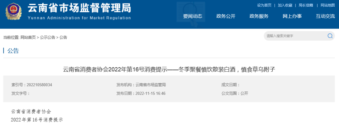 冬季聚餐慎飲散裝白酒,慎食草烏附子 一、消費(fèi)者要樹立“自己是健康第一責(zé)任人”的健康理念,加強(qiáng)食品安全意識,正確選購和飲用白酒。01:選購正規(guī)廠家生產(chǎn)的散裝白酒,購買時查看標(biāo)簽內(nèi)容是否齊全,對明顯低于市場價格的散裝白酒要保持高度警惕,不采購、不飲用生產(chǎn)廠家不明、未經(jīng)登記備案的小作坊生產(chǎn)加工的散裝白酒,不要購買、飲用私自勾兌和來源不明的散裝白酒;02:家庭自釀白酒嚴(yán)禁對外出售,不要在集體用餐中提供家庭自釀酒;03:農(nóng)村集體聚餐主辦者嚴(yán)禁采購無合格檢測報告、生產(chǎn)廠家不明、未經(jīng)登記備案的白酒小作坊生產(chǎn)加工的散裝白酒及自釀酒用于集體聚餐飲用;04:白酒生產(chǎn)經(jīng)營者嚴(yán)禁購買、貯存和使用甲醇、工業(yè)酒精等非食品原料。使用醇基液體燃料的各類餐飲服務(wù)單位,要加強(qiáng)使用環(huán)節(jié)管理,專人專位管理存放,標(biāo)貼明顯標(biāo)識,做好領(lǐng)用登記,嚴(yán)禁同白酒混合存放。 二、草烏、附子不是食品!請廣大消費(fèi)者慎食草烏、附子等毒性中藥材,避免中毒。01:正確認(rèn)識草烏、附子等毒性中藥材,在無醫(yī)生指導(dǎo)的情況下不要擅自服食,做到不參與、不邀約、不聚眾食用草烏、附子;02:經(jīng)營者應(yīng)嚴(yán)格遵守《中華人民共和國食品安全法》《醫(yī)療用毒性藥品管理辦法》,不以任何方式經(jīng)營以草烏、附子等毒性中藥材為原料的食品(包括自制泡酒)。 |