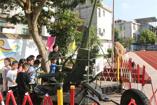 學校里的退役高射機槍,成為開展國防教育的“必讀課程”。黃水林攝 據(jù)介紹,部隊常態(tài)化開展軍人進校園活動,組織官兵到學校指導學生訓練,講述國防知識、革命歷史,聯(lián)歡互動增強學校師生尚軍、擁軍情懷;學校則開展師生進軍營活動,結合“八一”、元旦等重要節(jié)慶活動,組織師生帶雞蛋、地瓜干、紅衣花生等走進軍營,開展慰問官兵、為部隊出宣傳欄、表演文藝節(jié)目、打掃軍營等“擁軍”系列活動。