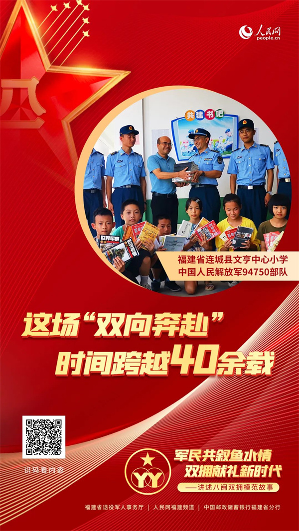 “軍愛民、民擁軍,軍民魚水一家親?!备=?,是全國唯一所有設區(qū)市連續(xù)五屆獲評雙擁模范城(縣)的省份,一個個軍愛民、民擁軍的生動故事在八閩大地不斷涌現(xiàn)。為唱響閩山閩水間的“愛我人民愛我軍”軍民情主旋律,福建省退役軍人事務廳聯(lián)合人民網(wǎng)福建頻道、中國郵政儲蓄銀行福建省分行共同推出“軍民共敘魚水情 雙擁獻禮新時代”主題宣傳活動,從“新時代八閩雙擁故事”看福建如何續(xù)寫新征程上的雙擁新篇章。 本期嘉賓:中國人民解放軍94750部隊 福建省連城縣文亨中心小學