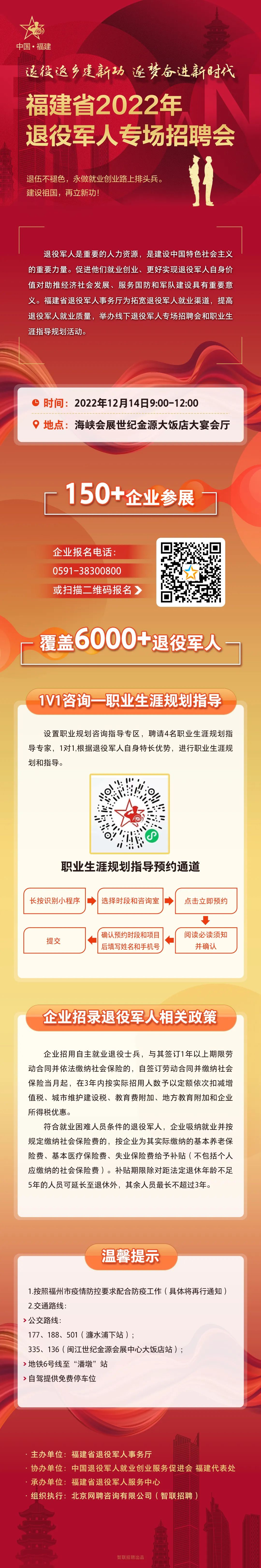 預(yù)約報名!福建省2022年退役軍人專場招聘會12月14日舉辦