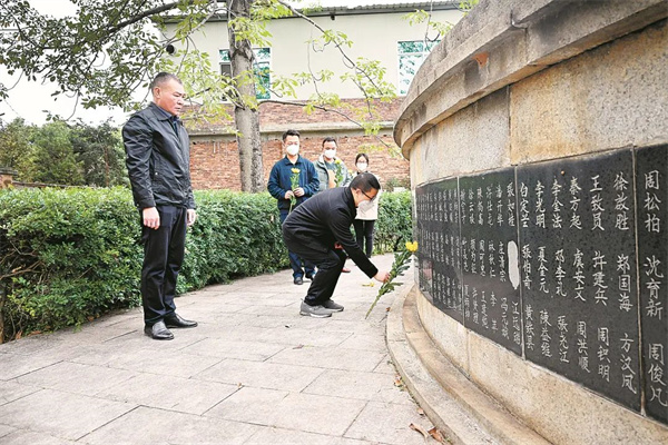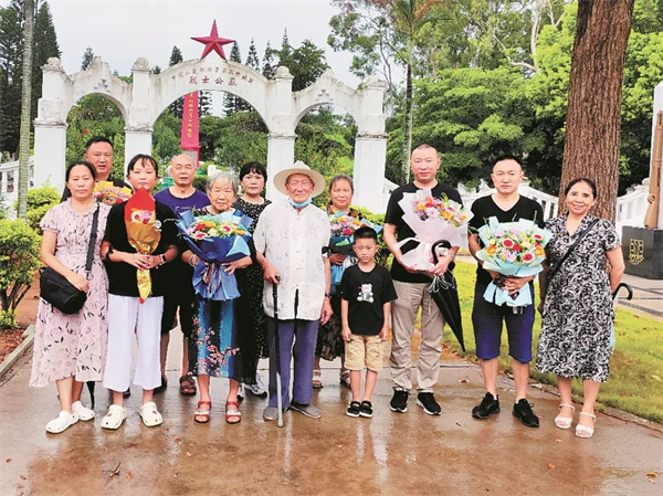2022年8月3日,四川省仁壽縣秦秋香一家三代12人到東山戰(zhàn)斗烈士陵園祭掃秦凱烈士墓。林曉東 攝
