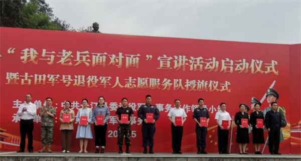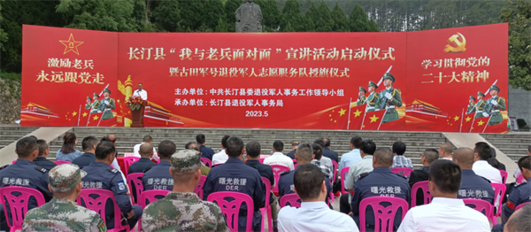 以老兵身份、從老兵視角、用老兵語(yǔ)言,講述新時(shí)代退役軍人奮斗故事。5月13日上午,龍巖市長(zhǎng)汀縣“我與老兵面對(duì)面”宣講活動(dòng)啟動(dòng)儀式暨古田軍號(hào)退役軍人志愿服務(wù)隊(duì)授旗儀式,在長(zhǎng)汀縣楊成武將軍廣場(chǎng)舉行,活動(dòng)旨在深入貫徹黨的二十大精神,發(fā)揮優(yōu)秀退役軍人示范教育作用,助推閩西革命老區(qū)高質(zhì)量發(fā)展示范區(qū)建設(shè)。長(zhǎng)汀縣政府何毅副縣長(zhǎng),長(zhǎng)汀縣人民武裝部馬建剛部長(zhǎng)出席儀式,活動(dòng)由長(zhǎng)汀縣退役軍人事務(wù)局黨組書(shū)記、局長(zhǎng)蔡坤高同志主持。