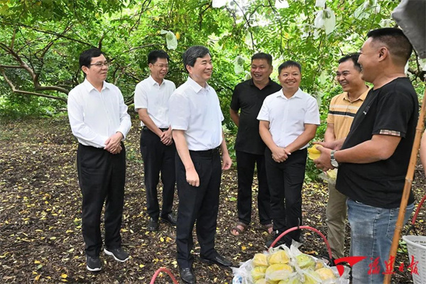 云霄縣漳江口紅樹林國家級自然保護(hù)區(qū),像“海岸衛(wèi)士”一樣,守護(hù)著150多種鳥類、240多種水生動物和近400種水生物。周祖翼一行沿著木棧道走進(jìn)紅樹林深處,一路詳細(xì)了解紅樹林生長習(xí)性和保護(hù)管理、生態(tài)修復(fù)等情況。霞光滿天,夕陽給層疊蔥郁的紅樹林鑲上了金邊,灘涂上水鳥捕食,青蟹和彈涂魚隨處可見。遠(yuǎn)眺林與海交接處,周祖翼說,我們要時刻牢記習(xí)近平總書記的囑托,加強(qiáng)海洋生態(tài)文明建設(shè),像愛護(hù)眼睛一樣守護(hù)好紅樹林。要久久為功,加大濕地保護(hù)修復(fù)力度,精心養(yǎng)護(hù)海洋生物資源,豐富生物多樣性;要加強(qiáng)綜合治理、系統(tǒng)治理、源頭治理,落實(shí)退養(yǎng)還濕,整治互花米草等入侵植物;要讓保護(hù)觀念深入人心,推動紅樹林生態(tài)保護(hù)與旅游觀光產(chǎn)業(yè)深度融合,提升人民群眾的保護(hù)意識和獲得感。云霄縣“下河楊桃”遠(yuǎn)近聞名,擁有國家地理標(biāo)志認(rèn)證。周祖翼走進(jìn)下河鄉(xiāng)下河村古楊桃林,根深葉茂、紅花簇簇,楊桃果掛滿枝頭,果農(nóng)臉上洋溢著豐收的喜悅。老樹一年產(chǎn)量有多少?價格銷量如何?果樹維護(hù)管理用什么肥料?百年老樹下,周祖翼與正在采摘的果農(nóng)深入交流,得知在楊桃科技小院專家指導(dǎo)下,通過綠色生態(tài)培育方法不斷改良品種,果肉更加清甜多汁,年產(chǎn)量達(dá)三萬多噸。周祖翼希望大家堅(jiān)持生態(tài)種植,既要保證質(zhì)量也要保護(hù)好環(huán)境。來到楊桃科技小院,周祖翼聽取農(nóng)業(yè)專家介紹,察看楊桃產(chǎn)業(yè)精深加工產(chǎn)品。周祖翼說,福建有許多優(yōu)質(zhì)特色農(nóng)產(chǎn)品,要做好“土特產(chǎn)”文章,加強(qiáng)與高校、科研機(jī)構(gòu)合作,積極引進(jìn)培育龍頭企業(yè),延伸拓展產(chǎn)業(yè)鏈,發(fā)展電商等新模式新渠道,以產(chǎn)業(yè)幫扶帶動農(nóng)民增收。