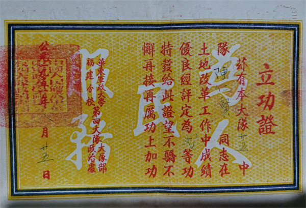 福州市馬鞍軍休所陳仁賢入選的紅色珍藏品《土地改革工作二等功獎狀》,見證了陳仁賢同志在土地改革工作中,不計個人得失,發(fā)揚(yáng)艱苦奮斗、愛崗敬業(yè)、甘于奉獻(xiàn)的“螺絲釘”精神。