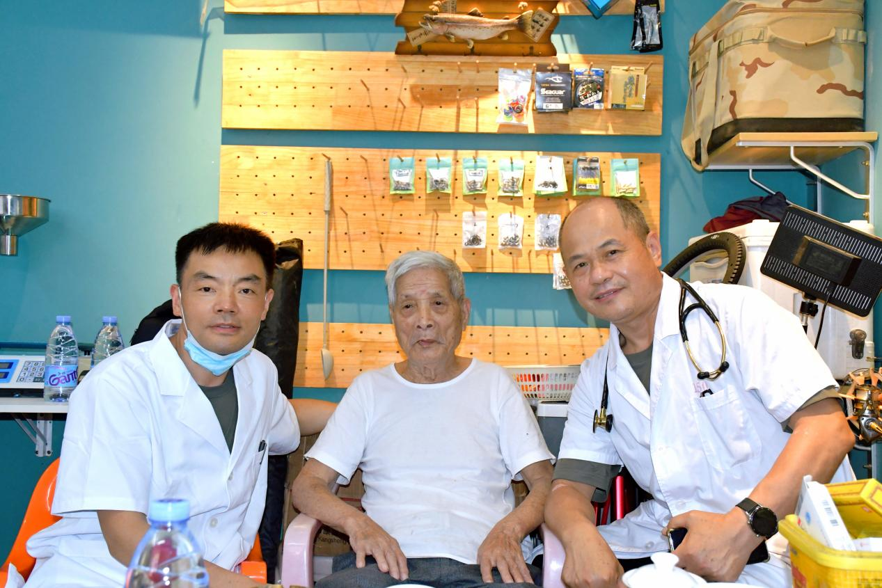 7月22日,在省退役軍人事務(wù)廳組織下,省榮軍醫(yī)院會(huì)同聯(lián)勤保障部隊(duì)第九〇〇醫(yī)院軍醫(yī)專家,來到漳州市云霄縣,為當(dāng)?shù)貧埣曹娙?、在鄉(xiāng)老復(fù)員軍人和烈屬、功臣模范等優(yōu)撫對象提供為期五天(7月22日-7月26日)的免費(fèi)醫(yī)療服務(wù),把黨和政府的關(guān)懷溫暖送給優(yōu)撫對象,用實(shí)際行動(dòng)向“八一”建軍節(jié)獻(xiàn)禮! “老戰(zhàn)友!我們看您來啦!”22日上午,醫(yī)療巡診隊(duì)攜帶檢查設(shè)備及藥品來到家住云霄縣云陵鎮(zhèn)中山路的90歲參戰(zhàn)老兵梁啟德家中,為他進(jìn)行健康體檢并送上節(jié)前的暖心問候。 “這么熱的天,你們還大老遠(yuǎn)來看我,太感謝了!”“我當(dāng)兵那年20歲,23歲參加炮擊金門時(shí)我已經(jīng)是一名黨員了,我感到特別光榮......”,回憶起當(dāng)年的戰(zhàn)爭,梁啟德眼神中閃爍著光芒。 “高血壓需要規(guī)范用藥,我們幫您寫下來,按照這樣服用......”在細(xì)致體檢后,來自第900醫(yī)院心內(nèi)科主任醫(yī)師羅助榮、藥劑科主任藥師陳維中為梁啟德制定了詳細(xì)的用藥方案并普及預(yù)防知識(shí)。