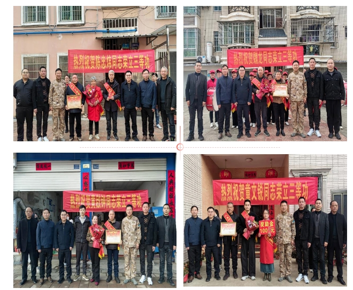 春回大地萬象新,尊崇榮光暖兵心。2月11日上午,龍巖市連城縣委常委、副縣長張開和連城縣人武部政治委員柳軍鋒帶隊(duì),連城縣退役軍人事務(wù)局、蓮峰鎮(zhèn)等單位組成送喜報慰問組,為8名榮立三等功(三級表彰)的現(xiàn)役軍人家庭送去喜報。通過隆重的儀式,讓尊崇之光在新春的城鄉(xiāng)間熠熠生輝。
