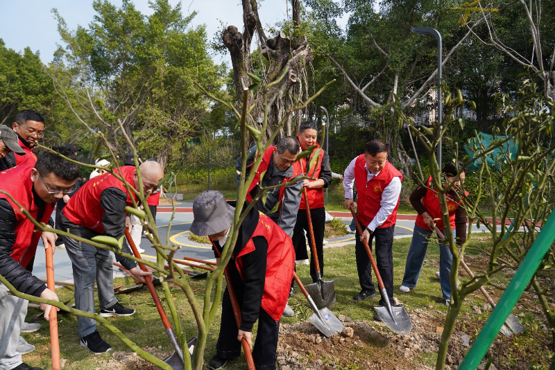 在福州國光公園,活動現(xiàn)場呈現(xiàn)出一派熱火朝天的春日勞動景象。志愿者們分工合作,揮鎬松土、扶苗填坑、澆水灌溉,順利種下32棵福桔樹,為閩江之畔增添了一抹新綠。