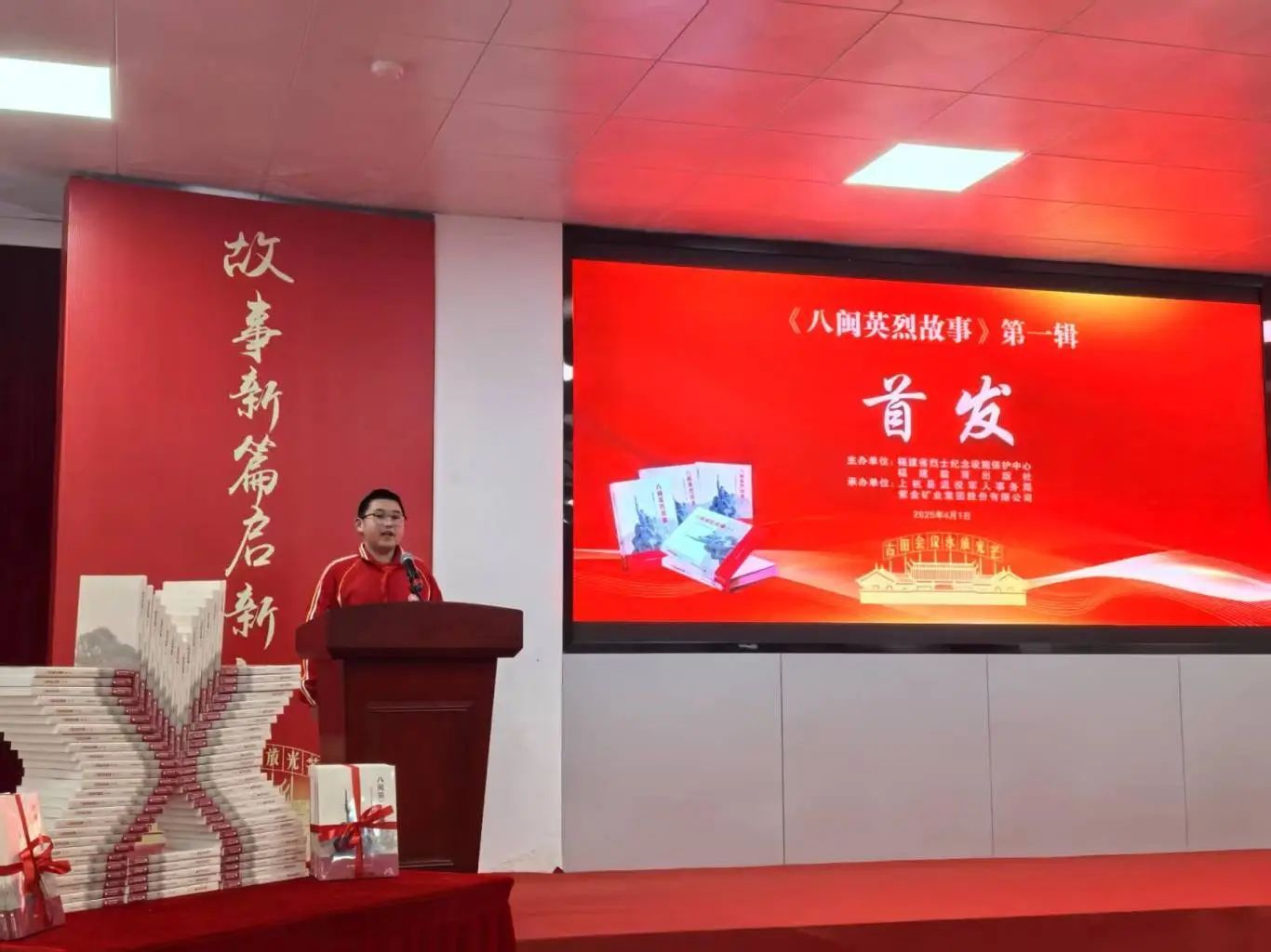 4月1日上午,由福建省烈士紀(jì)念設(shè)施保護(hù)中心、福建教育出版社主辦,上杭縣退役軍人事務(wù)局、紫金礦業(yè)集團(tuán)承辦的《八閩英烈故事》第一輯首發(fā)暨第二輯編撰啟動(dòng)儀式在福建省上杭縣舉行。退役軍人事務(wù)部烈士紀(jì)念設(shè)施保護(hù)中心主任許航宇、省退役軍人事務(wù)廳黨組書記、廳長羅慶春、海峽出版發(fā)行集團(tuán)董事長黃葦洲、龍巖市委副書記楊溢、省委黨史方志辦原一級(jí)巡視員王盛澤、《八閩英烈故事》作者之一何英以及省退役軍人關(guān)愛基金會(huì)和省退役軍人關(guān)愛協(xié)會(huì)負(fù)責(zé)人等應(yīng)邀出席儀式,上杭縣有關(guān)單位、擁軍企業(yè)、軍烈屬及學(xué)生代表等約200人參加活動(dòng)。
