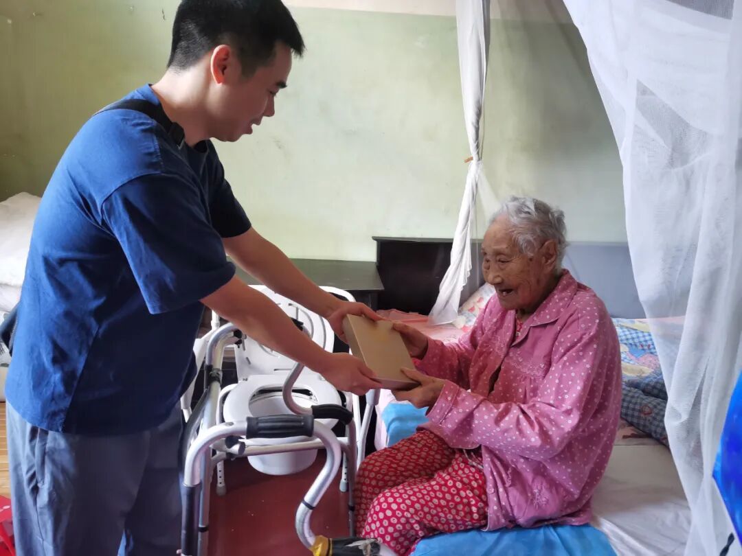 閩侯縣農(nóng)業(yè)農(nóng)村局工作人員為王玉林送上紀(jì)念章 當(dāng)天,王玉林坐在床邊,雙手雖因年歲微微顫抖,但仍穩(wěn)穩(wěn)接過紀(jì)念章,布滿皺紋的臉上漾起欣慰的笑容——這抹笑容里,藏著一段跨越80年的烽火記憶,也映照著一位老戰(zhàn)士對(duì)黨和國家的赤誠初心。