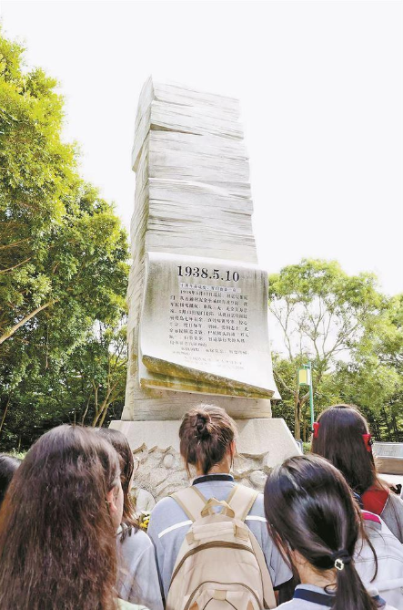 日前,廈門市中學(xué)生參觀“永銘在心”廈門抗日死難者紀(jì)念雕塑及廈門抗戰(zhàn)時(shí)期死難者名錄碑。(唐光峰 攝)