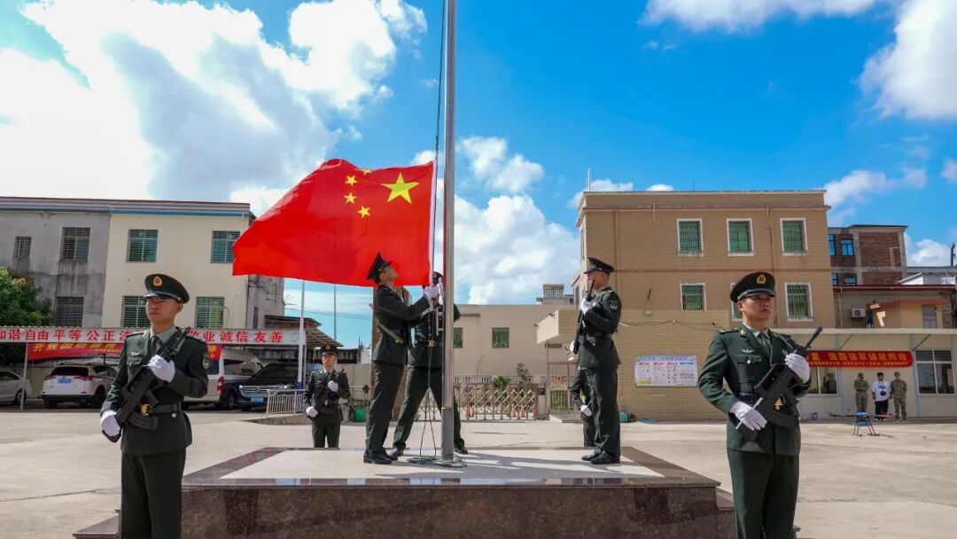 退役軍人蔡澤恩帶領(lǐng)全體同學(xué)面向國旗宣誓:“愿以吾輩之青春,捍衛(wèi)盛世之中華”,鏗鏘誓言激發(fā)濃濃愛國情。