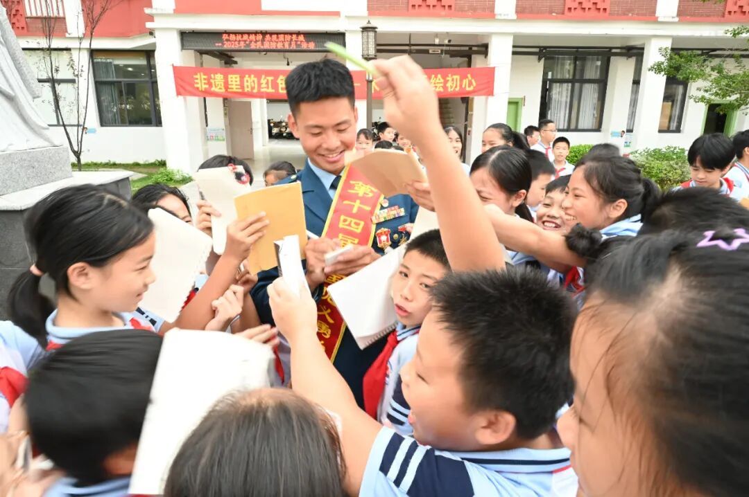 “顏叔叔,可以給我簽個(gè)名嗎?”“我也要合影!”……9月29日下午,漳州市巷口中心小學(xué)的校園里,一場(chǎng)別開生面的“追星”熱潮正在上演。同學(xué)們簇?fù)碇摹懊餍恰?,不是娛樂偶像,而是他們的學(xué)長——第十四屆全國見義勇為模范、二等功臣退役軍人顏國慶。他受邀回到母校,參加“弘揚(yáng)抗戰(zhàn)精神 共筑國防長城”全民國防教育月活動(dòng)。這一刻,校園不僅是教育的場(chǎng)所,更成為傳承紅色精神、點(diǎn)燃報(bào)國夢(mèng)想的生動(dòng)課堂。