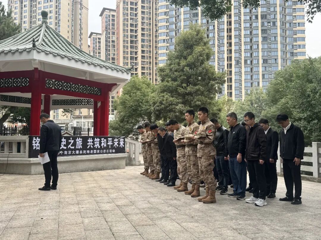 寒冬肅立,警鐘長鳴?;顒釉谥鞒秩说闹罗o中拉開帷幕,致辭既回望了南京大屠殺中三十萬同胞遇難的沉痛歷史,也闡明了國家公祭日以國家名義緬懷逝者、告慰先烈的深刻意義,號召在場人員銘記歷史、珍愛和平、開創(chuàng)未來。隨后,全體人員向南京大屠殺遇難同胞及為民族獨立和人民解放犧牲的先烈致以深切哀悼,并集體肅立默哀一分鐘,以此寄托對遇難同胞和革命先烈的無盡哀思。
