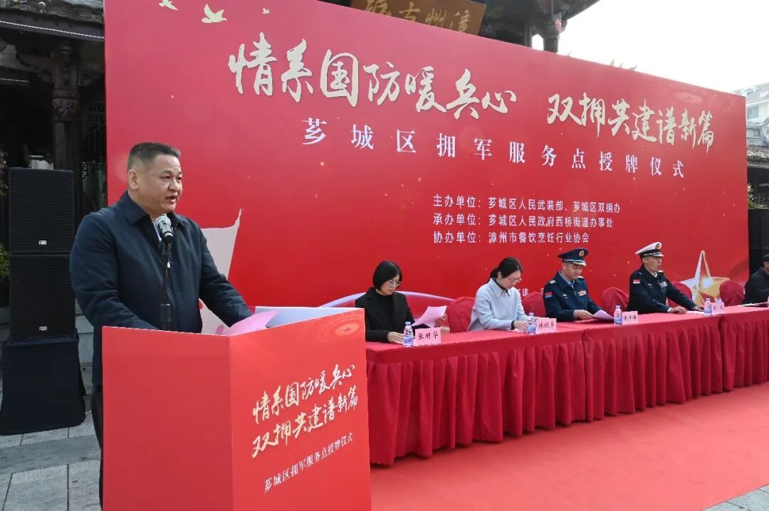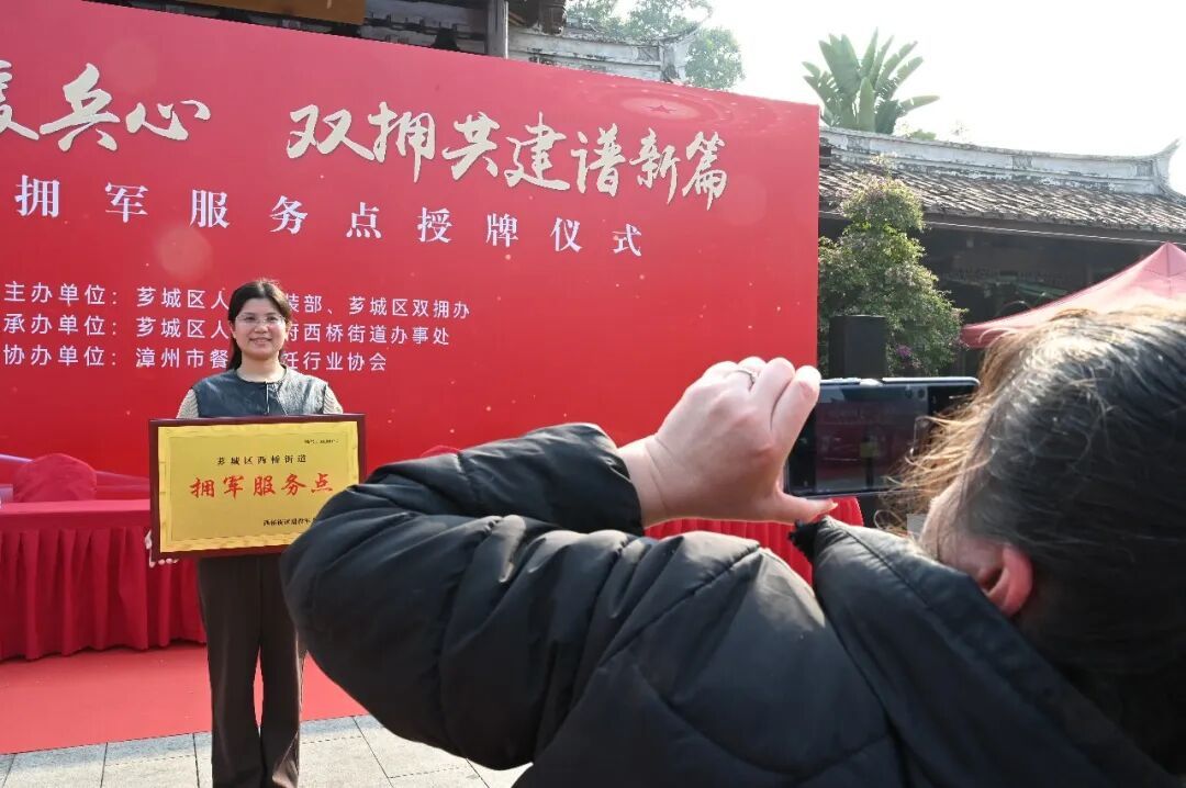 蚵仔煎、咸水鴨、五香面、四果湯……這些散發(fā)著閩南煙火氣的特色小吃,如今在漳州薌城有了嶄新的“身份標識”。1月19日上午,漳州古城的青磚古巷間暖意融融,“情系國防暖兵心雙擁共建譜新篇”——薌城區(qū)擁軍服務(wù)點授牌儀式在此溫情啟幕。25家商戶的32處店面正式懸掛上“擁軍服務(wù)點”牌匾,讓現(xiàn)役軍人、退役軍人在品嘗地道美食的同時,更能感受到實實在在的尊崇與關(guān)懷。