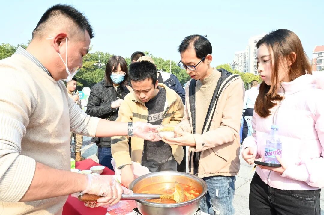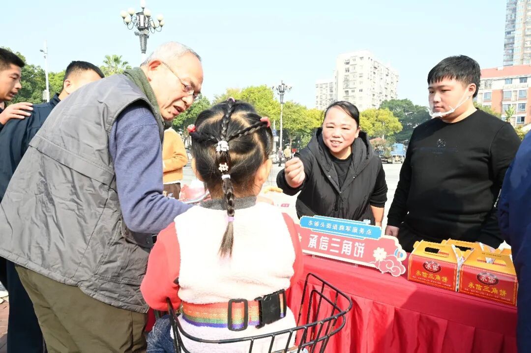 授牌儀式現(xiàn)場,面煎粿、面粉棗、三角餅、咸水鴨等8家商戶代表帶來了豐富的特色小吃。熱氣騰騰的沙茶面、咸香可口的面粉棗、金黃酥脆的三角餅、甜而不膩的豆脯餅香氣四溢,彌漫在古城街巷?,F(xiàn)役軍人、退役軍人、應(yīng)征青年與市民們圍聚在攤位前,一邊品嘗,一邊交談,場面溫馨融洽。