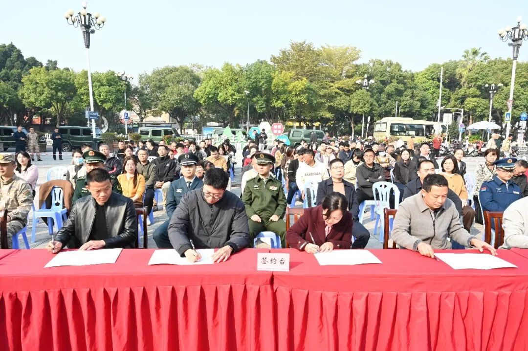 活動現(xiàn)場,市(區(qū))雙擁辦、市餐飲烹飪行業(yè)協(xié)會、區(qū)市場監(jiān)管局、區(qū)退役軍人事務(wù)局、鄉(xiāng)鎮(zhèn)(街道)退役軍人服務(wù)站等相關(guān)部門負責人,與首批授牌的餐飲商戶代表、駐漳部隊官兵及退役軍人代表等百余人齊聚一堂,共同見證這份深厚的軍民魚水情。 儀式上,各鄉(xiāng)鎮(zhèn)(街道)退役軍人服務(wù)站負責人與商戶代表簽訂了《薌城區(qū)擁軍聯(lián)盟共建協(xié)議》,相關(guān)領(lǐng)導(dǎo)為商戶授牌。根據(jù)協(xié)議規(guī)定,現(xiàn)役及退役軍人憑有效證件,即可在這些門店享受7折至9折不等的優(yōu)惠。