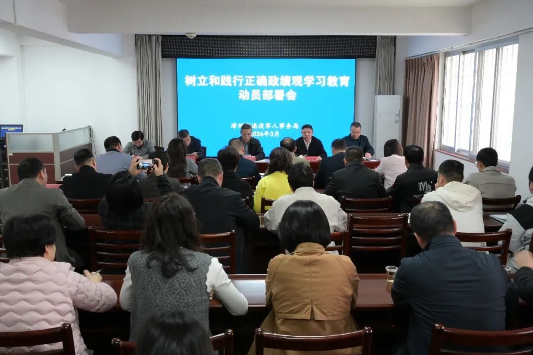 連日來 我省各地退役軍人事務(wù)部門 陸續(xù)召開樹立和踐行正確政績觀 學(xué)習(xí)教育動員部署會 加強研究謀劃和組織實施 推動學(xué)習(xí)教育走深走實 漳州市 為深入學(xué)習(xí)貫徹習(xí)近平總書記關(guān)于樹立和踐行正確政績觀學(xué)習(xí)教育的重要講話和重要指示精神,全面落實中央、省委、市委相關(guān)會議部署要求,3月10日,漳州市退役軍人事務(wù)局召開樹立和踐行正確政績觀動員部署會,對全局開展學(xué)習(xí)教育工作進(jìn)行全面動員、系統(tǒng)部署。