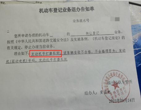 近日,福清市民袁先生向《直通屏山》反映,他購買的二手車發(fā)動機號被私刻,平潭、福州兩地車管部門都告知不能辦理過戶登記,而法院判決要他履行購車合同完成車輛過戶,令他左右為難。